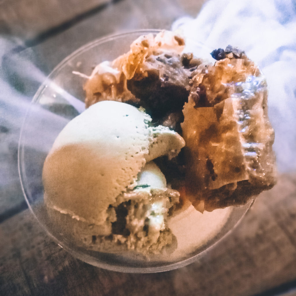 For starters, Ed and I shared some delicious cheese balls with mayo chilli sauce. He also had the roasted pork belly and kimchi; which he loved. For mains, we shared the tapas Platter 5, which was a combo of all our favourite tapas delights. For dessert, Ed chose The Rock’s signature Orange and Chocolate Sphere, which was melted with Cointreau chocolate sauce before our eyes, to reveal the chocolate cake and orange marmalade flavoured gelato beneath it. I had The Rock Baklava which arrived emanating smoky dry ice and was a great way to end off the night. Just imagine Baklava, white chocolate rose ganache, crushed pistachio and pistachio gelato – YUM!