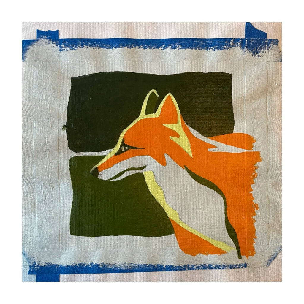 So far we’ve done three Mock-a-Master artworks inspired by: Jim Dine, Henri Matisse, and Vincent van Gogh. Below are my fox-themed iterations, which are all 200 mm x 200 mm acrylic paintings on canvas.